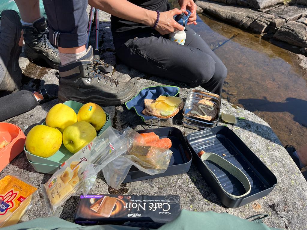 On démarre pour une ballade plate sans caillou (enfin, jusqu’à ce qu’on en croise)! Les WalKyries arrivent à la fin des 100km, chacune à son rythme. Après cette journée, les WalKyries se sont offert une petite baignade dans le lac avant de rentrer au camps pour tout ranger, une dernière fois! Repas du soir tous ensemble avec Thibault notre guide et nos anges de l’ombre Lise et Pierre. Ce dernier repas est rythmé par les rires et larmes (d’émotion ou de joie) mais surtout par le partage des souvenirs et anecdotes (dont celle du cacayou) créés durant cette semaine. Une chose est sûre, les liens créés durant cette aventure perdureront au-delà des 100km.